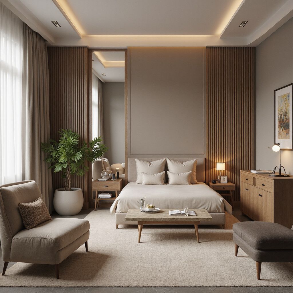Ambiente elegante con sala de estar independiente, escritorio de trabajo y amenidades premium para una estancia productiva y cómoda.